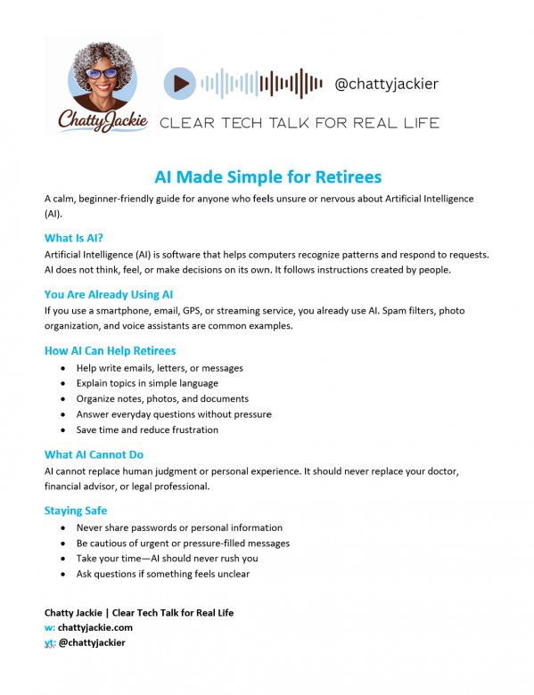 AI is simply a tool, and like any tool, it can be used in helpful, practical ways—especially for retirees.